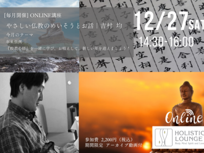 2025/12/27 (土)吉村均/やさしい仏教のめいそうとお話:年末恒例 『般若心経』を一緒に学び、お唱えして、新しい年を迎えましょう!【月例】 講座の内容 『般若心経』の「般若 」とはインドの「... Read More